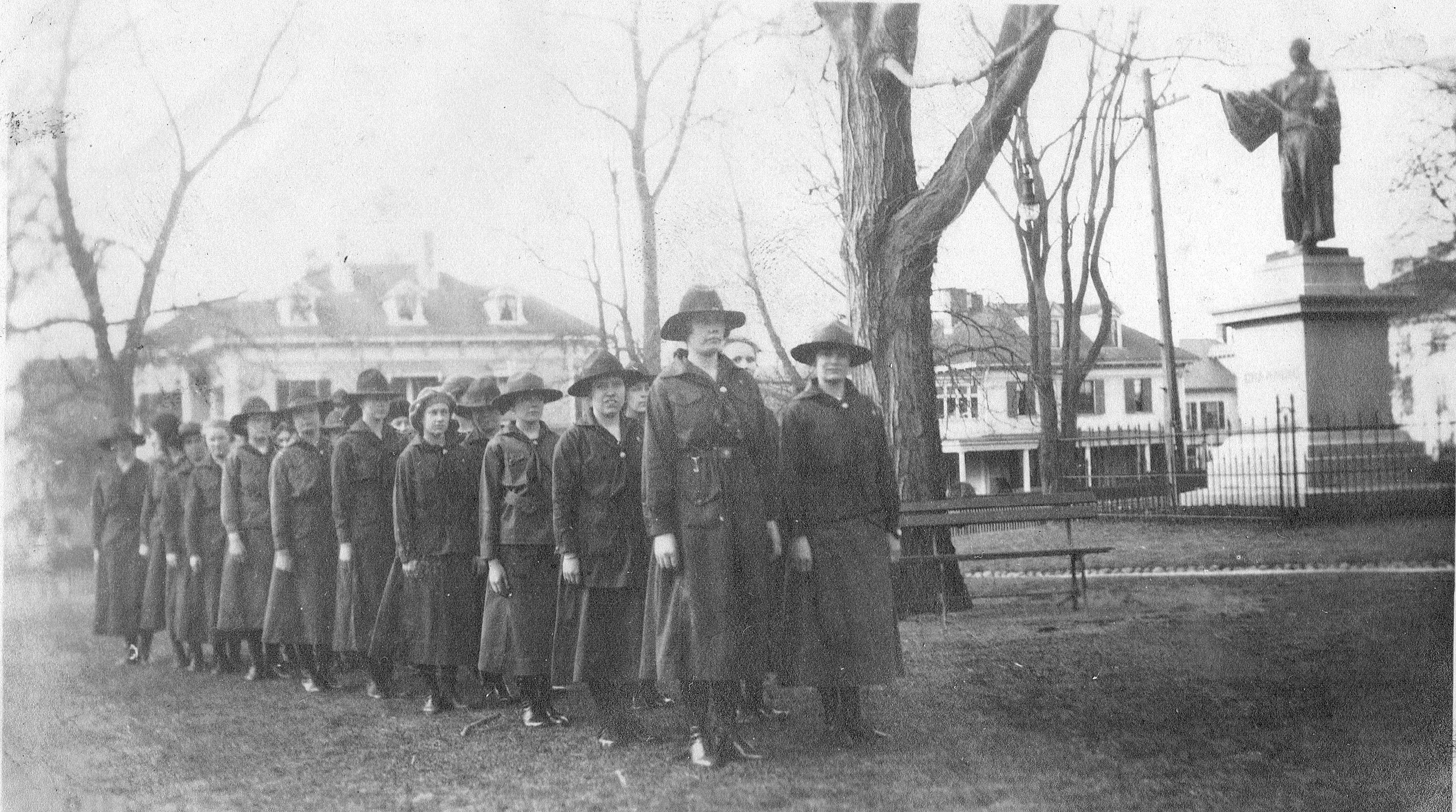 Mira Smith Hoffman, of New Bedford, married chemical industrialist William Henry Hoffman in 1892. The Hoffmans lived on Rumstick Point in Barrington. After William's death in 1916, Mira devoted her resources to the development of Girl Scouts of the USA. During World War I, Mira organized the first Barrington Girl Scout Troop, Eagle Troop No. 1, at the Nayatt School. Reflecting national interest in military service, the troop had a marching band and bugle corps.